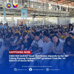 CHED ROI UniFAST team distributes stipends to the 867 Tulong Dunong Program (TDP) grantees from the 1st District of Ilocos Norte at Northwestern University, Laoag City, Ilocos Norte on October 16, 2025.