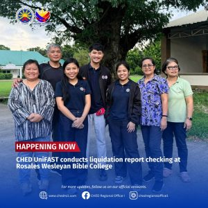 The CHED UniFAST team conducts liquidation report checking at Rosales Wesleyan Bible College