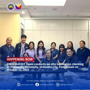 CHED UniFAST Team conducts on-site liquidation checking at Panpacific University, Urdaneta City, Pangasinan on October 23, 2025.