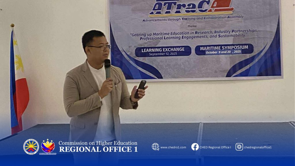 𝗛𝗔𝗣𝗣𝗘𝗡𝗜𝗡𝗚 𝗡𝗢𝗪 | CHED RO1 conducts the Maritime Advancements through Training and Collaboration Assembly (ATRACA) Year 2 Symposium for Students at J & V Resort and Hotel, Sevilla, City of San Fernando, La Union, October 10, 2025.