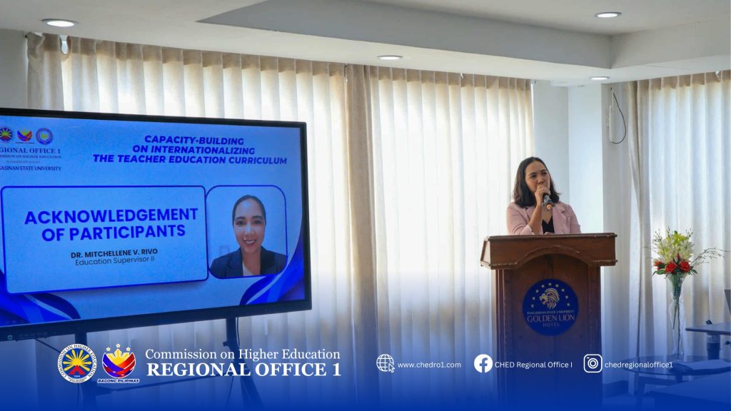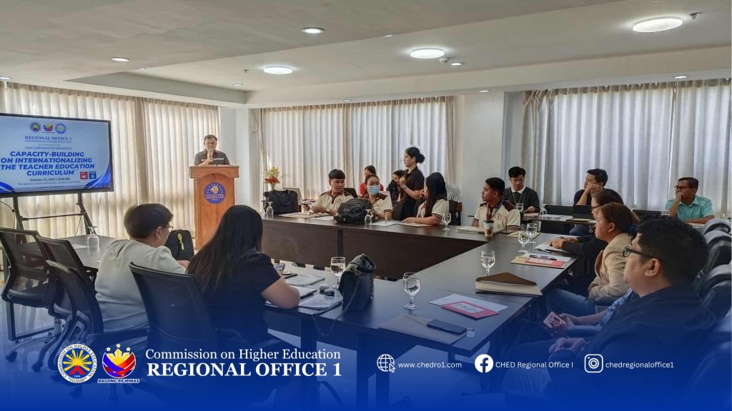 The Commission on Higher Education Regional Office I (CHED ROI), in partnership with Pangasinan State University (PSU), as GCED Regional Hub, conducted the Capacity-Building on Internationalization of the Teacher Education Curriculum at the Golden Lion Hotel, Lingayen, Pangasinan on October 23, 2025.