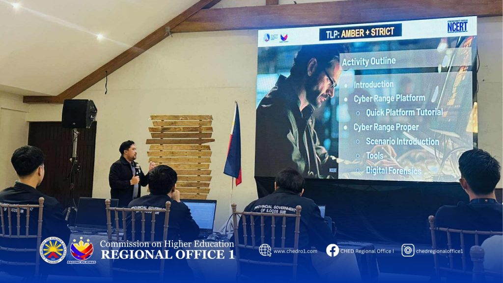 𝗛𝗔𝗣𝗣𝗘𝗡𝗜𝗡𝗚 𝗡𝗢𝗪 | CHED ROI participates in the Department of Information and Communications Technology – Region I’s Cyberrange Exercise, a virtual environment used for cybersecurity training, testing, and research, at the Sola Hotel, Laoag City, Ilocos Norte on October 14, 2025.