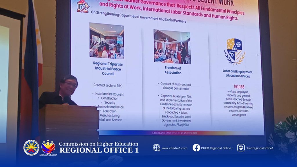 Dr. Ferrer’s participation emphasized CHED RO1’s efforts to ensuring that higher education remains responsive to labor market needs through the alignment of academic programs with employment trends and human capital development priorities.
