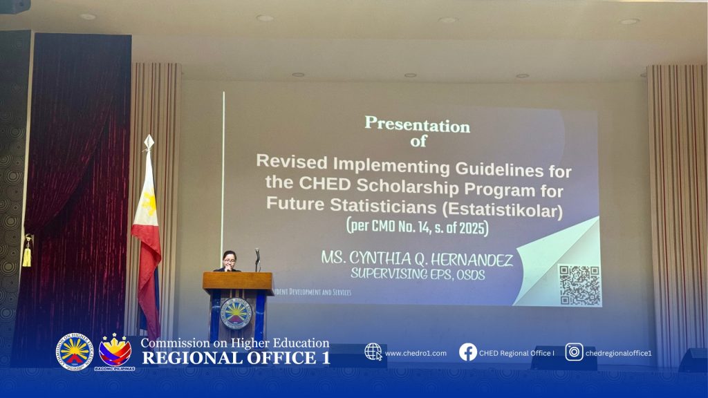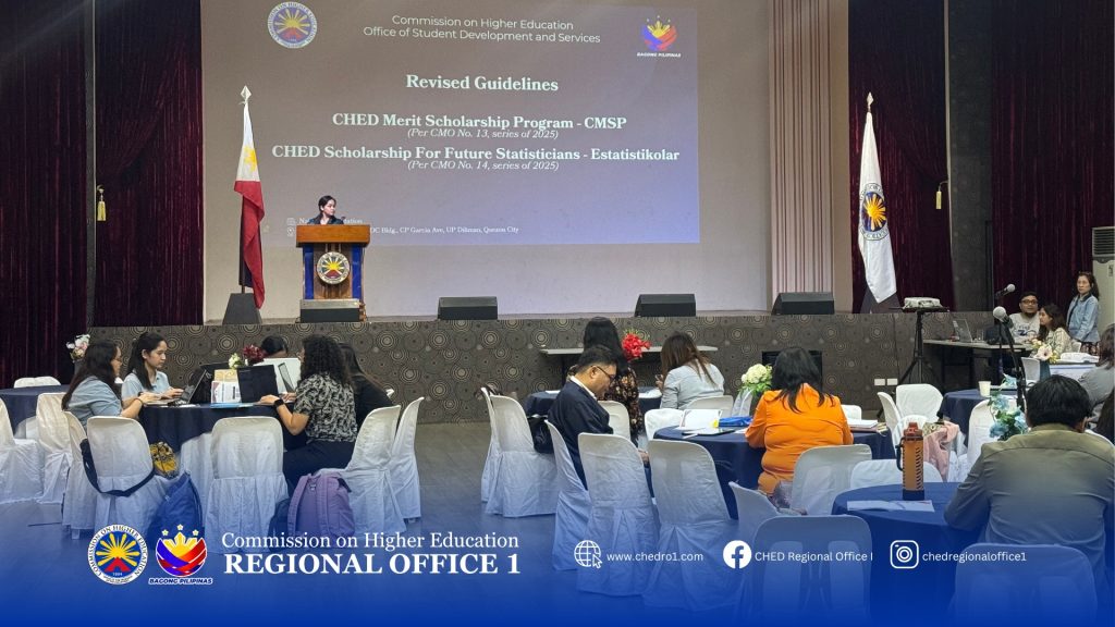 𝗛𝗔𝗣𝗣𝗘𝗡𝗜𝗡𝗚 𝗡𝗢𝗪 | Representatives from CHED Regional Office participate in the Hybrid National Orientation on the Revised Implementing Guidelines of the CHED Merit Scholarship Program (CMSP) and the CHED Scholarship Program for Future Statisticians (Estatistikolar) at the CHED Auditorium, HEDC Building, C.P. Garcia Avenue, UP Diliman, Quezon City on October 28, 2025.