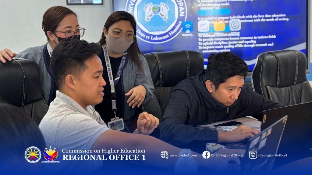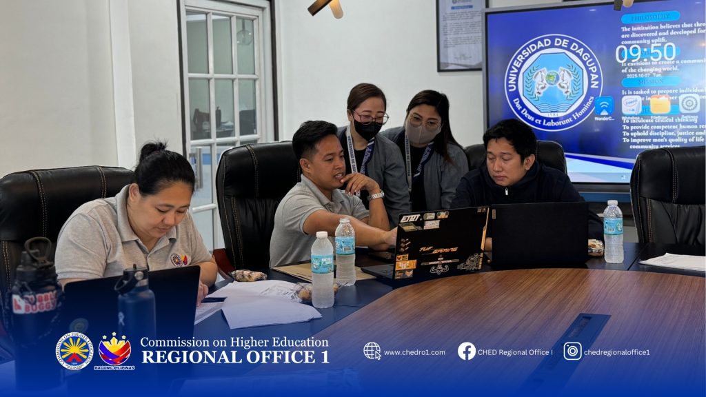 CHED Regional Office I UniFAST Regional Coordinators are conducting a Liquidation Report monitoring at Universidad de Dagupan, Dagupan City, Pangasinan for funds downloaded to the institution under the Tertiary Education Subsidy (TES) and Tulong Dunong Program (TDP).