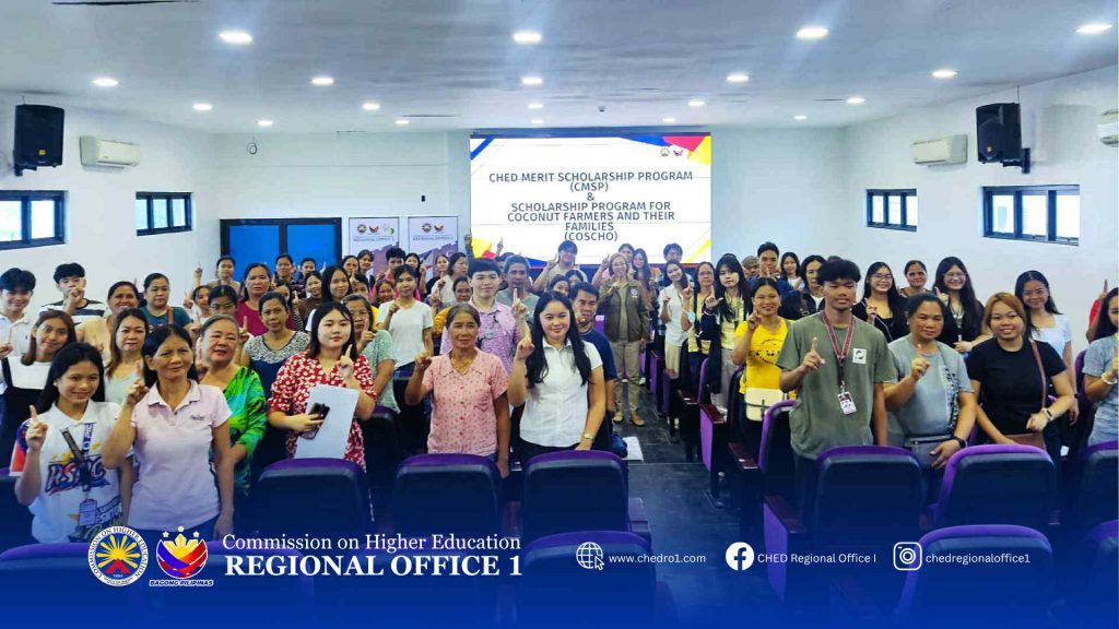 CHED RO1 conducts Orientation, Distribution, and Signing of Scholarship Contracts for the CHED Merit Scholarship Program (CMSP) and Scholarship Program for Coconut Farmers and their Families (CoScho) grantees at the Philippine College of Science and Technology at Calasiao, Pangasinan on October 3, 2025.