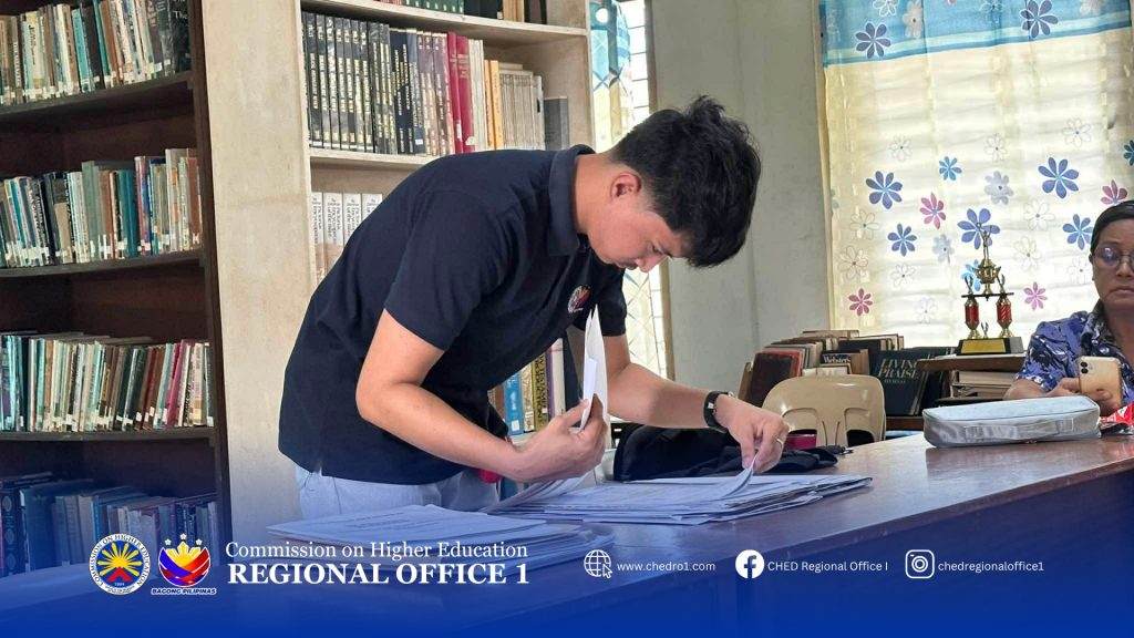 The CHED UniFAST team conducts liquidation report checking at Rosales Wesleyan Bible College